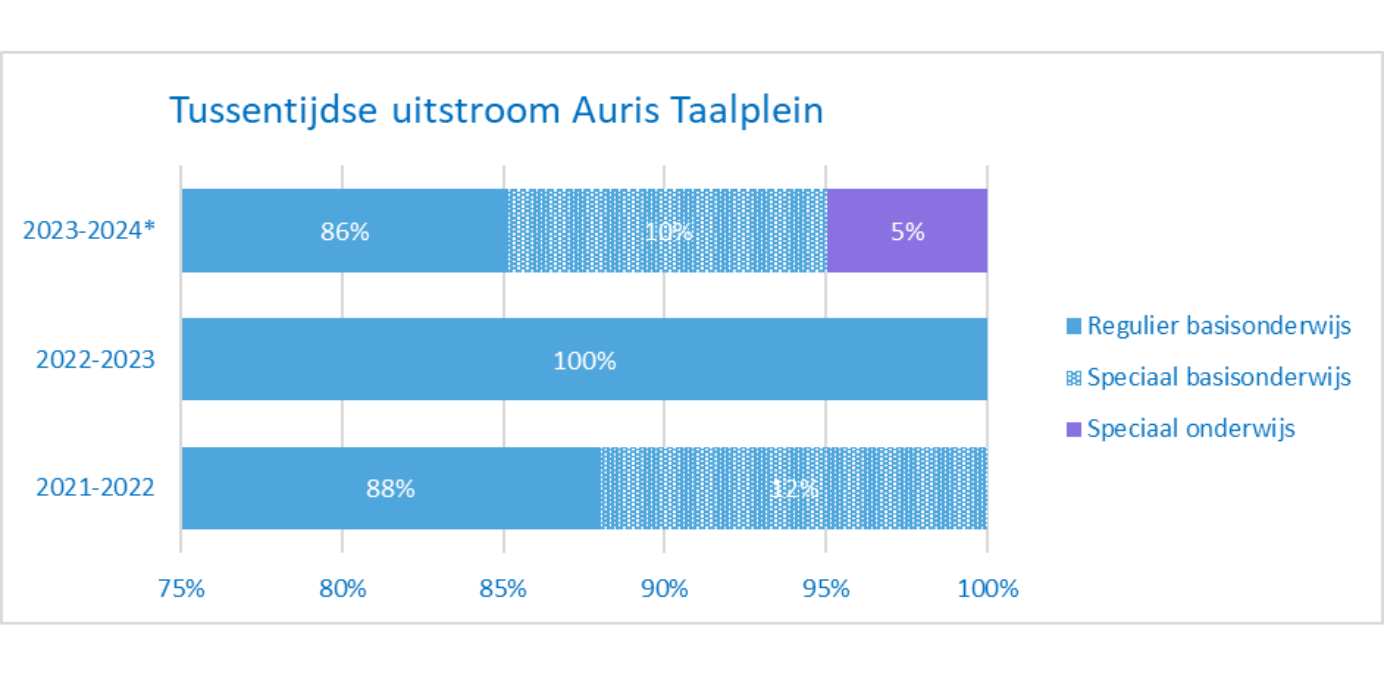 De ambitie van Auris is dat 75% van de leerlingen die tussentijds uitstromen, uitstroomt naar het regulier onderwijs (regulier en speciaal basisonderwijs).